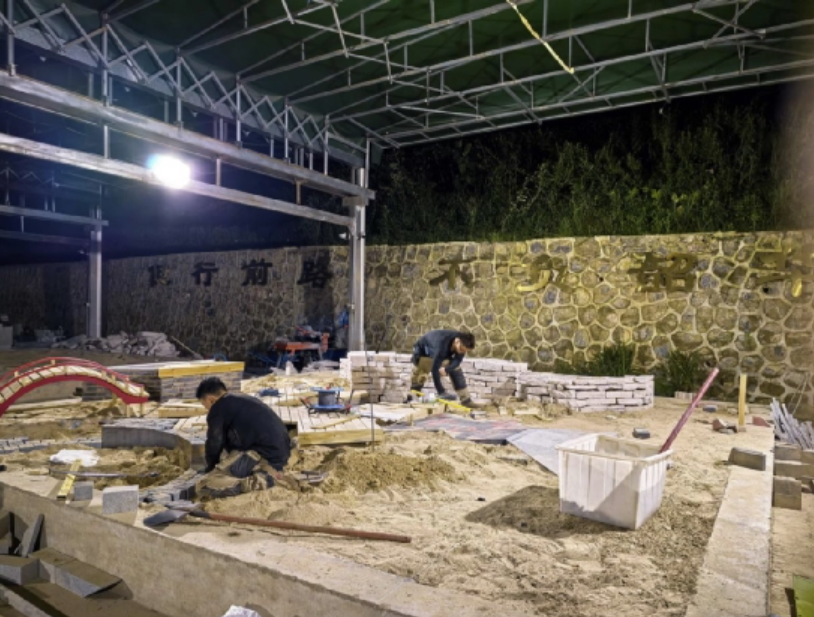 园艺赛项的陈华峰和张艺耀则是“搭档作战”,两人需要在8小时内完成近10平方米的景观施工,从石板铺设到植物种植,误差不能超过1毫米。为了培养默契,他们每天都要进行“盲配”训练——一个人负责测量,一个人负责切割,全程主要靠手势和眼神交流。张艺耀的腰有旧伤,长时间弯腰施工会疼得直不起身,他就绑着护腰坚持,陈华峰看在眼里,主动承担了更多重活。“我们是队友,更是兄弟,要赢就一起赢。”正是这份互相扶持,让他们在国赛中顺利完成了所有施工任务。
